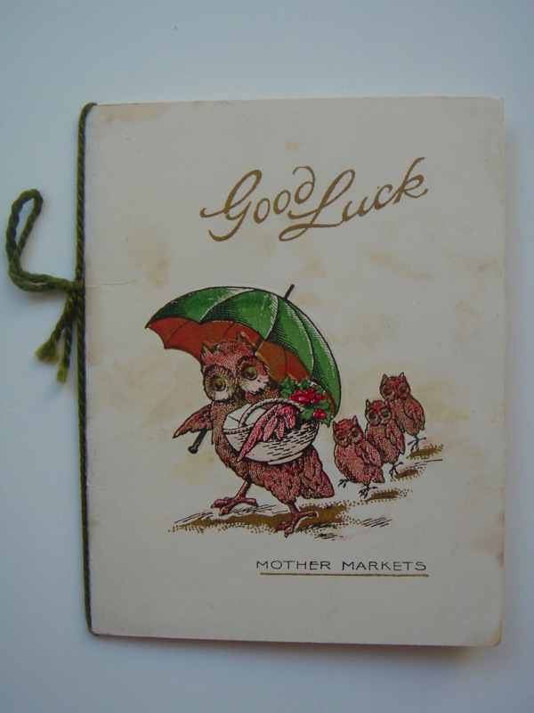 Title (ebay affiliate link): Vintage Antique Authentic Good Luck Greeting Card Post Card Owl