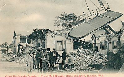 Title (ebay affiliate link): 1907 "KINGSTON JAMAICA EARTHQUAKE ROYAL MAIL BOOKING OFFICE " PC V RARE LOOK