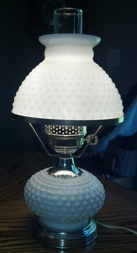 Title (ebay affiliate link): Vintage Milk White Glass Hobnail Gone With The Wind Hurricane Lamp 16.5" Tall