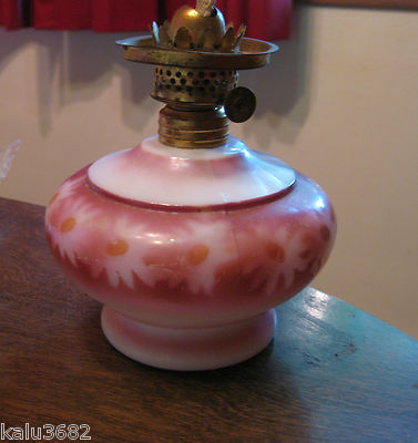 Title (ebay affiliate link): Vintage Pink on White Flowers Milkglass Hurricane Oil Lamp P&A MFG Co.