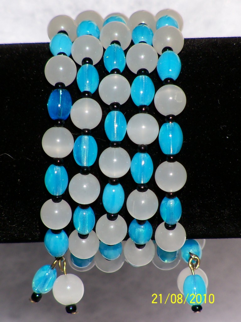 VINTAGE CZECH MILK GLASS & TURQUOISE WRAP/COIL BRACELET