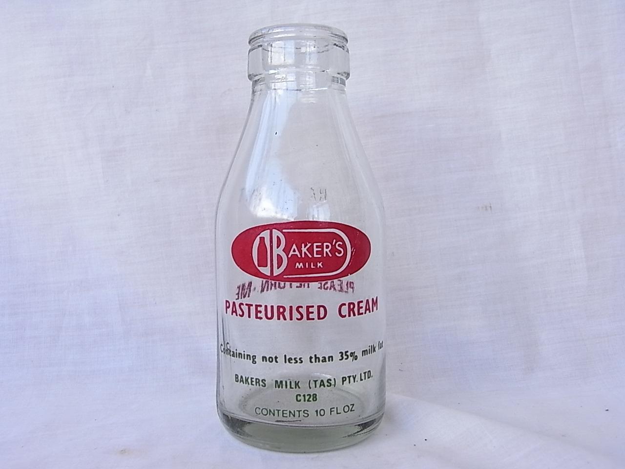 OLD GLASS HALF PINT CREAM BOTTLE BAKER'S MILK ( TAS )