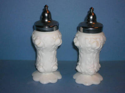 FENTON MILK GLASS EMBOSSED ROSE SALT AND PEPPER SHAKER