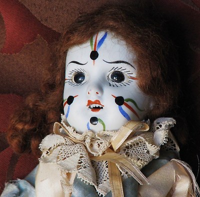 Title (ebay affiliate link): Antique 10 1/2" French LC clown doll, bisque head, open mouth, jointed