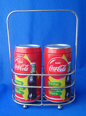 Title (ebay affiliate link): Coca-Cola can salt and pepper shakers in steel caddy Thirst Stops Here coke