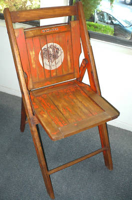 Title (ebay affiliate link): Vintage Hancock Oil Co. Wood Folding Chair Slat Style
