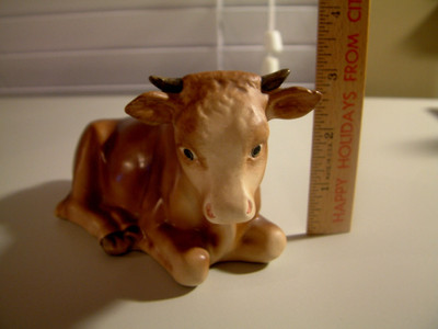 Goebel cow figurine for nativity set with M.J. Hummel signature on bottom.