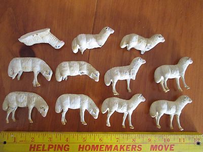 Antique 11 German Putz Sheep Stick Leg Vintage Christmas Nativity Sheep
