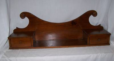 Title (ebay affiliate link): VINTAGE WOOD DECORATIVE HANGING WALL SHELF TWO DRAWERS