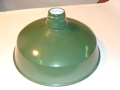 VINTAGE PORCELAIN STEEL INDUSTRIAL STEAMPUNK LAMP SHADE GREEN & WHITE