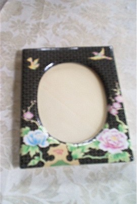 Vtg OMC Japan ceramic picture frame Lotus Birds black colors wall desk 7 1/2" x