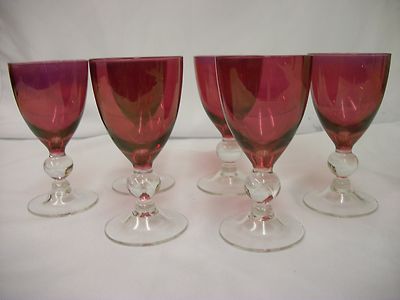 Ruby And Crystal Goblets Lot Of 6 2 1/2" Diameter 5" Height