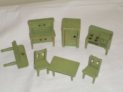 Title (ebay affiliate link): OLD ANTIQUE WOOD DOLLHOUSE FURNITURE KITCHEN PAINTED