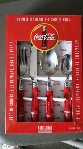 Title (ebay affiliate link): Coca Cola 16 Piece Flatware Set Service for 4. Still Sealed in Original Box