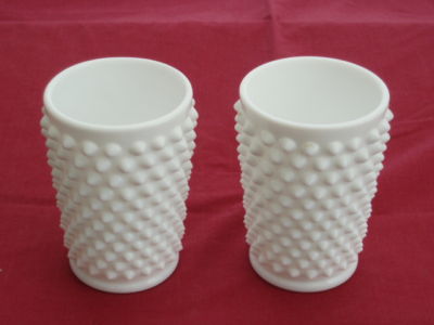 TWO (2) WHITE MILK GLASS HOBNAIL GLASSES L@@K