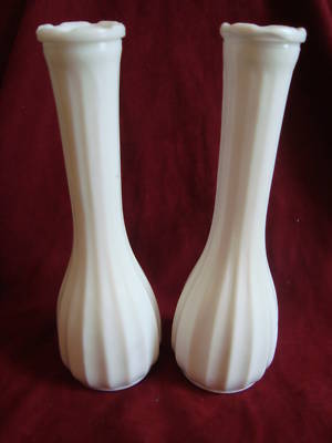 Vintage 2 White Milk Glass Vases CLC Co. 11 Line Design