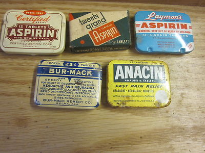 Title (ebay affiliate link): VINTAGE lot of Five ASPRIN tins Certified, Burmack, Anicin, Laymans & 1