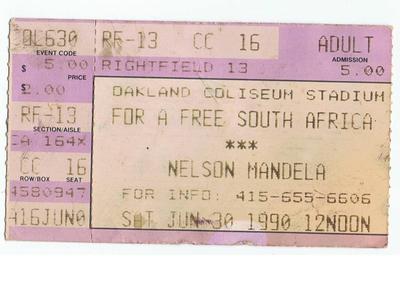 Ticket Stub Nelson Mandela in Oakland 1990