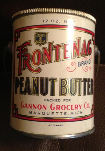 Title (ebay affiliate link): Vintage Frontenag Brand Peanut Butter Tin Gannon Grocery Co. Michigan