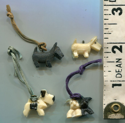 Title (ebay affiliate link): SCOTTIE DOGS & WESTIES 4 Diff Old Celluloid Charms Gumball Prizes? 1930's? JAPAN