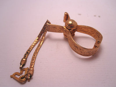 VTG GOLD PLATED GLOVE HOLDER CLIP KEYCHAIN ORNATE ROSE FLOWER PRINT