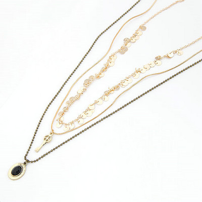 New Unique Stylish Jewel Gold Metal Necklace Key Black Gem Pendant Vintage Chain