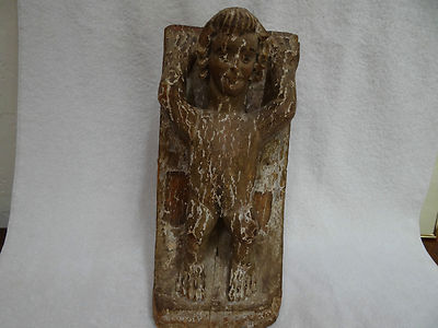 antique European wood carved bracket baby jesus 18thC or earlier 14.5" tall