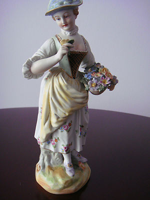 Dresden Carl Thieme FIGURINE of woman holding a basket flowers
