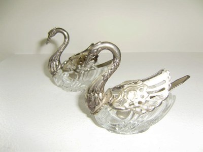 Title (ebay affiliate link): 2 Vintage Silver & Crystal Swan Open Salts with Movable Wings & Spoons