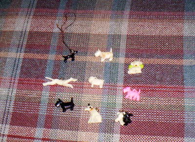 Lot 9 Vintage Celluloid Dog Charms Gumball Cracker Jack 1940's Nipper Scotties