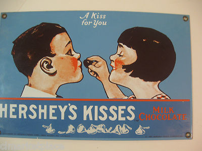 ANDE ROONEY PORCELAIN ENAMEL AD SIGN HERCHEY'S KISSES "A KISS FOR YOU"