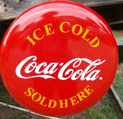 Title (ebay affiliate link): 12" Metal Coke Button Sign, "Ice Cold Coca-Cola Sold Here"