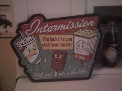 Title (ebay affiliate link): LOBBY INTERMISSION SNACK METAL SIGN SODA ICE CREAM VINTAGE COKE MOVIE THEATER