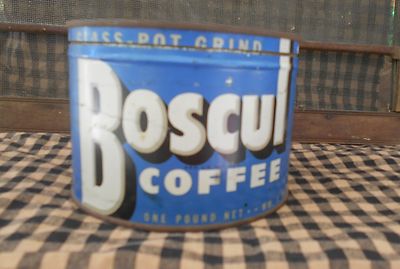 Title (ebay affiliate link): Vintage Boscul Coffee Tin~ 4 Ur Primitive Pantry or Tin Collectors~