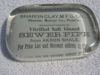 Title (ebay affiliate link): Vtg GLASS PAPERWEIGHT Sharon Clay Mfg PA Sewer Pipe Akron Shale Vit Salt Glazed