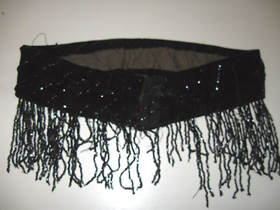 ANTIQUE VELVET BELT WITH JET GLASS BEADING TASSELS~DOLL CLOTHES TRIM~EDWARDIAN