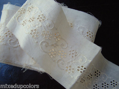 Antique Vintage Whitework Lace Embroidery Cutwork Trim Doll Bear Dress Cotton