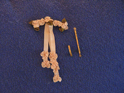 Title (ebay affiliate link): Antique Silk Flower Ribbon Pin Perfect Bisque Doll Accessory!