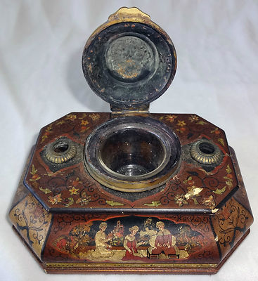 Title (ebay affiliate link): 1x ANTIQUE MIDDLE EASTERN WOODEN INK WELL w. PAINTED DESIGNS - some damage (Jos)