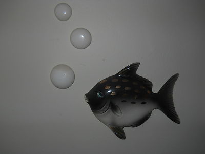 ADORABLE vintage porcelain glazed fish & bubbles wall decor