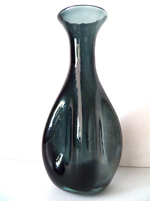 Antique Blown Smoke Glass Pontil Primitive Dimple Vase