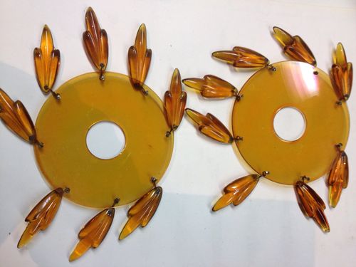 Title (ebay affiliate link): ***LAST PAIR***Vintage Czech Crystal Bobeche Set Amber-unique Prisms