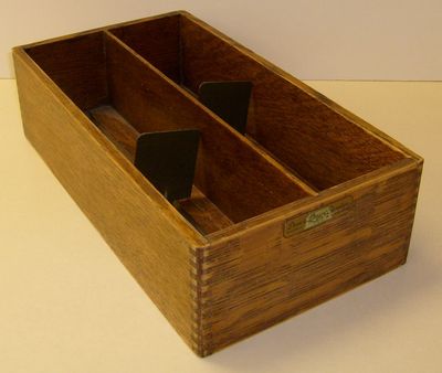 Title (ebay affiliate link): Vintage Oak Library Card File Box Movable Metal Holders Demco Library Supplies