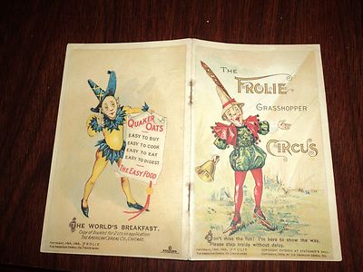 Title (ebay affiliate link): Frolie Grasshopper Circus, color Quaker Oats booklet, ca 1898