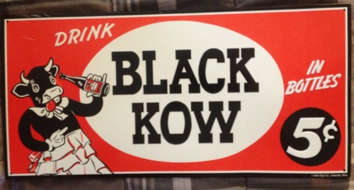 Vintage "Drink Black Kow" Tin Metal Advertising Sign Orange Black White AAA Sign