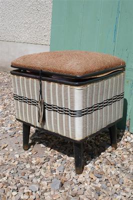 Title (ebay affiliate link): Vintage 1950's Footstool Sewing Box + Contents Wool Retro Stool Rockabilly Chic