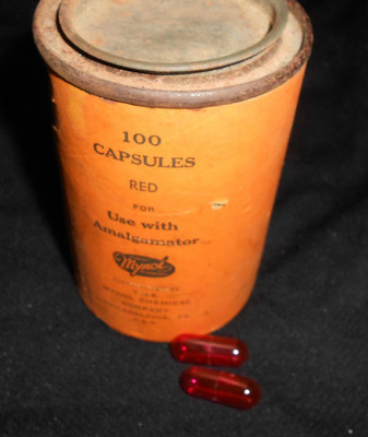 Title (ebay affiliate link): ANTIQUE CIRCA 1910 FULL CANISTER OF RED AMALGAMATOR CAPSULES