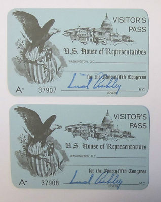 Title (ebay affiliate link): (2) mint Visitor Passes U.S. HOUSE of REPRESENTATIVES 95th Congress; LUD ASHLEY
