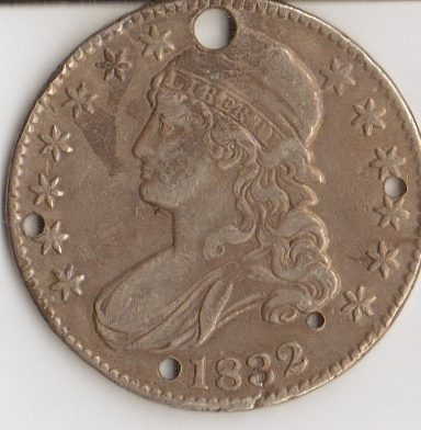 silver *Holed -1832 -.Half Dollar used for "Good Luck" Charm