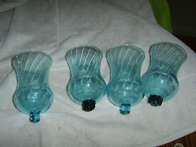 4 Home Interiors, Tall, Fluted, Traditional, Blue, Aqua Votive Cups, HOMCO